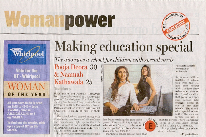 Pooja Deora and Naamah kathawala both impeccably turned out,could easily pass off for designers. For Pooja, designing has been abiding passion but at present it is JBCN Pan Academy. Lower Parel, a school for children with special needs that is taking up most of their time..... |